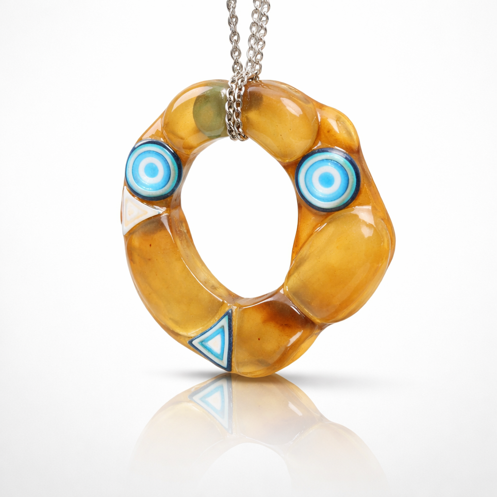 Caramel Glass Pendant with embedded blue spiral murino pattern