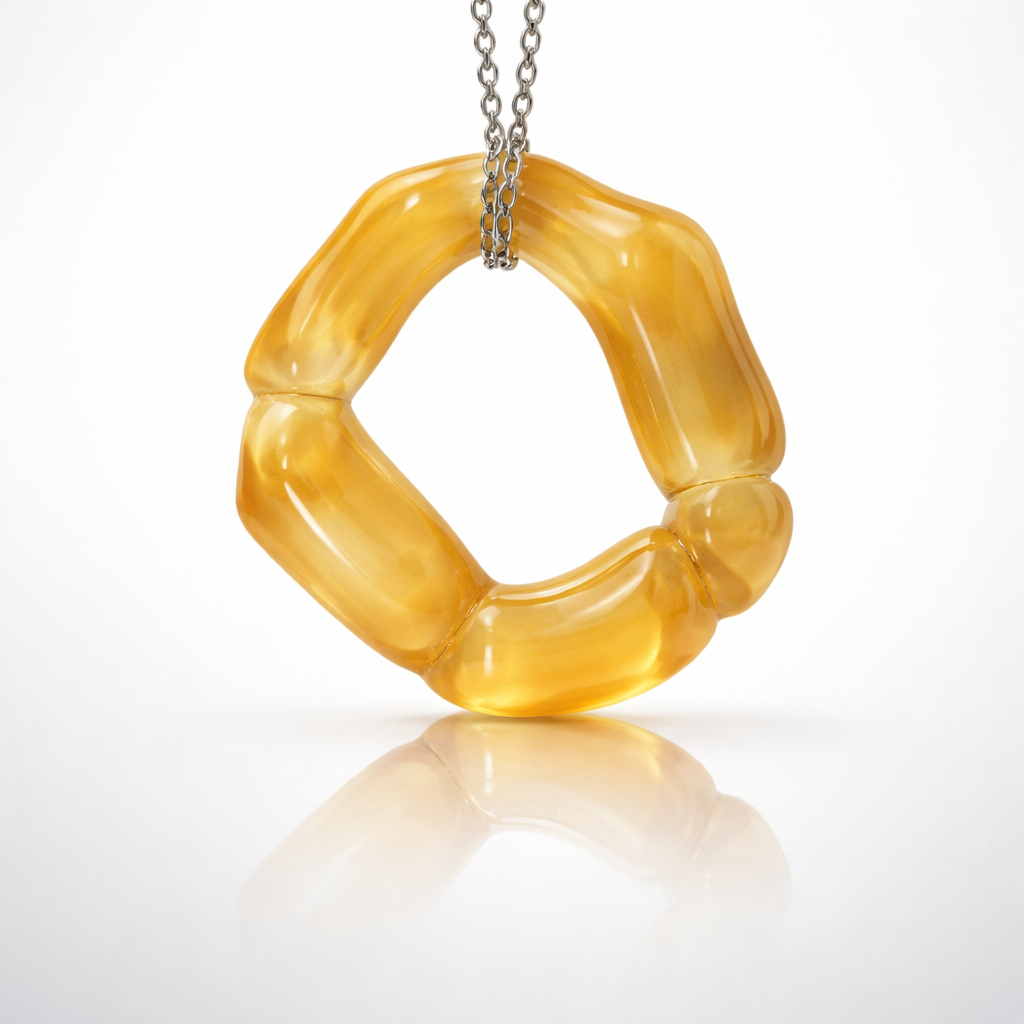 Hand-formed caramel glass pendant holding warm, body-like light.